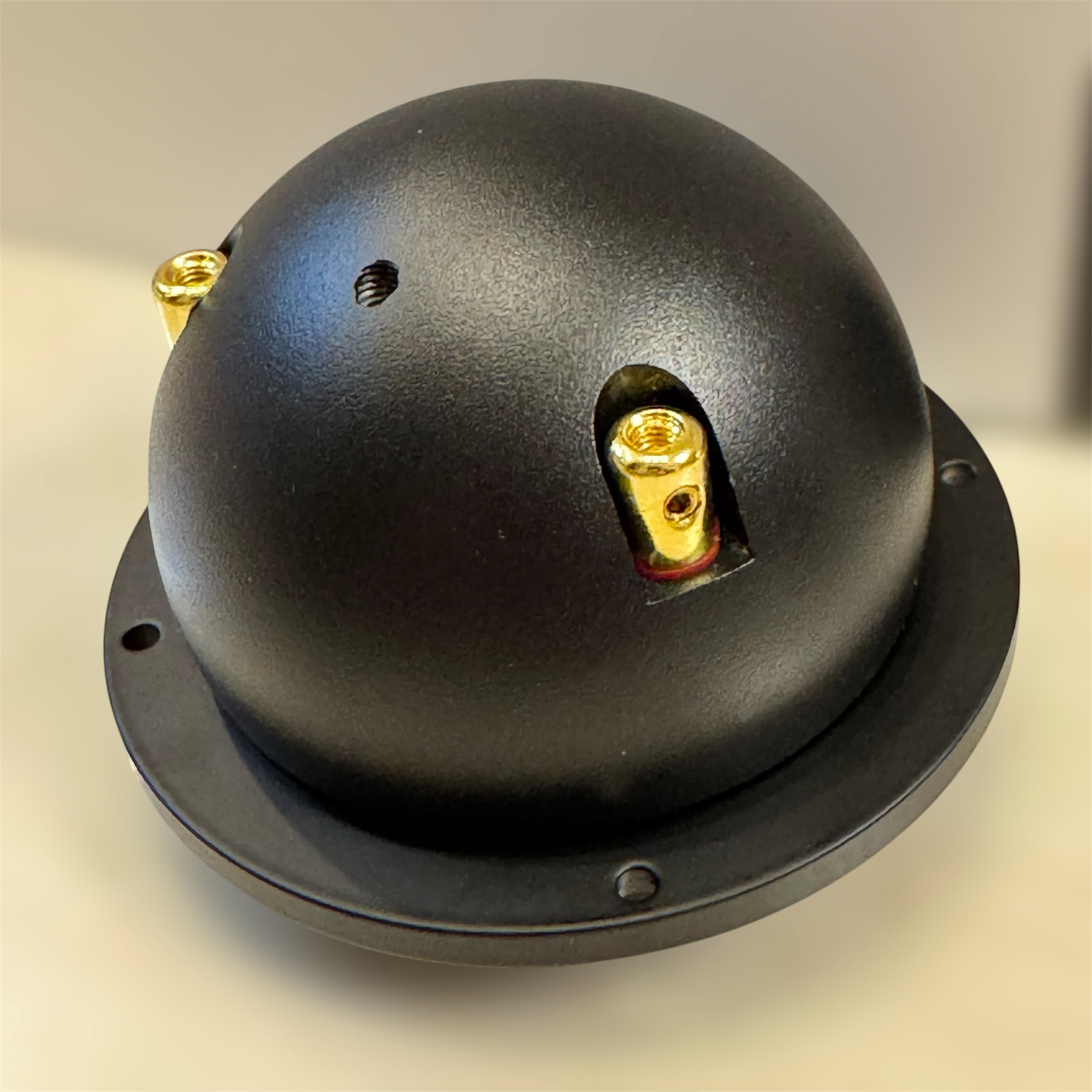 一般的なアルミやADC材と比較して引張強度および剛性に優れ、振動共鳴に対する耐性が極めて高い素材です。その一方で共振Qが高く、不要なピークや倍音共鳴の発生源となりやすい傾向があり、金属特有のピーキーな響きが生じやすいため、表面には特別に選定した適度な膜厚と制振性を持つ粉体塗装を施し、不要共振の緩和と高域の質感向上を図っています。